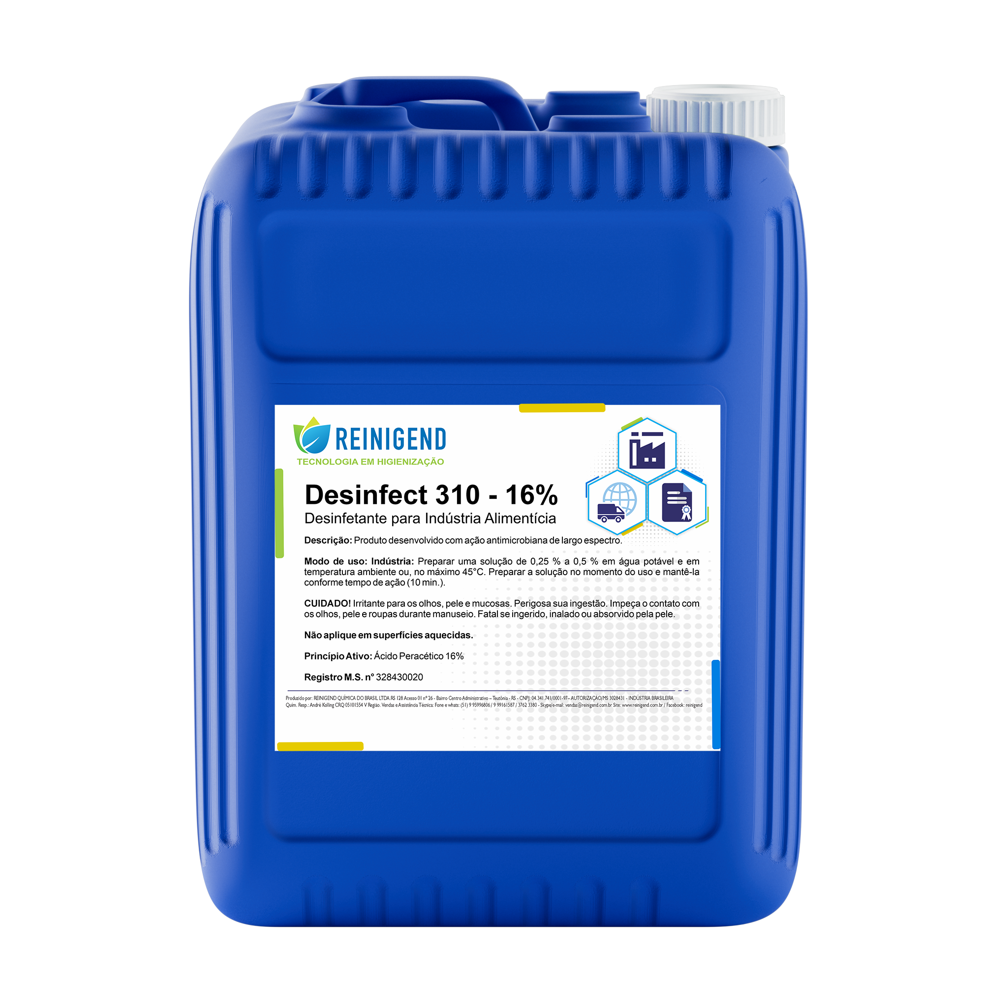 Desinfect 310 - 16% - Ácido Peracético - Para ser utilizado em indústria de bebidas em geral, indústria de alimentos, sistema (CIP) e superfícies em geral.